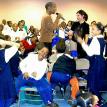 The pictures on this page show that audiences of all ages and types enjoy Exposure Musical Revues' performances. You can see that our performances are fun in all sorts of locations and events. Notice how the college students are enjoying the presentation in the cafeteria. Seniors at a Senior Center are dancing to the music. Exposure is a hit at Performance Arts Centers. You will also see pictures of elementary school children as well.